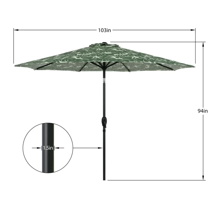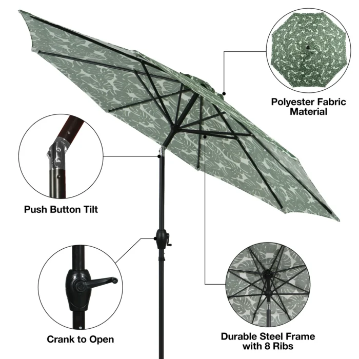 9′ Monstera Palm Crank Lift and 3 Position Tilt Patio Umbrella